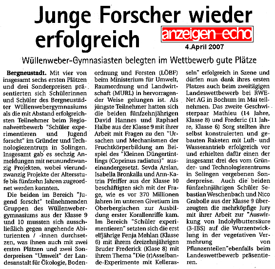 Nordrhein-Westfalen „Jugend forscht“ vom 19. – 22. März 2007 bei